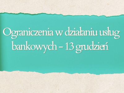 Szanowni Państwo, 13 grudnia 2025 r., w związku z planowanymi pracami serwisowymi, mogą wystąpić chwilowe ograniczenia w działaniu usług bankowych. Przepraszamy za niedogodności i dziękujemy za w… -