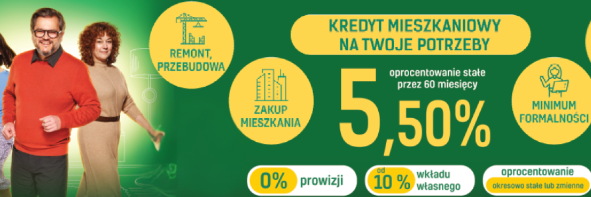 W celu zapoznania się z bieżącą ofertę kredytu hipotecznego z oprocentowaniem okresowo-stałym prosimy o kontakt z oddziałem Banku. Oferta - warunki cenowe kredytu zmieniają się co tydzień. Potwierdzeniem oferty cenowej dla pierwszego okresu oprocentowania okresowo-stałego kredytu jest wydany Formularz informacyjny.